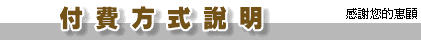 為了方便許多網友不能使用信用卡的困擾,在此提供其他付款方式。
